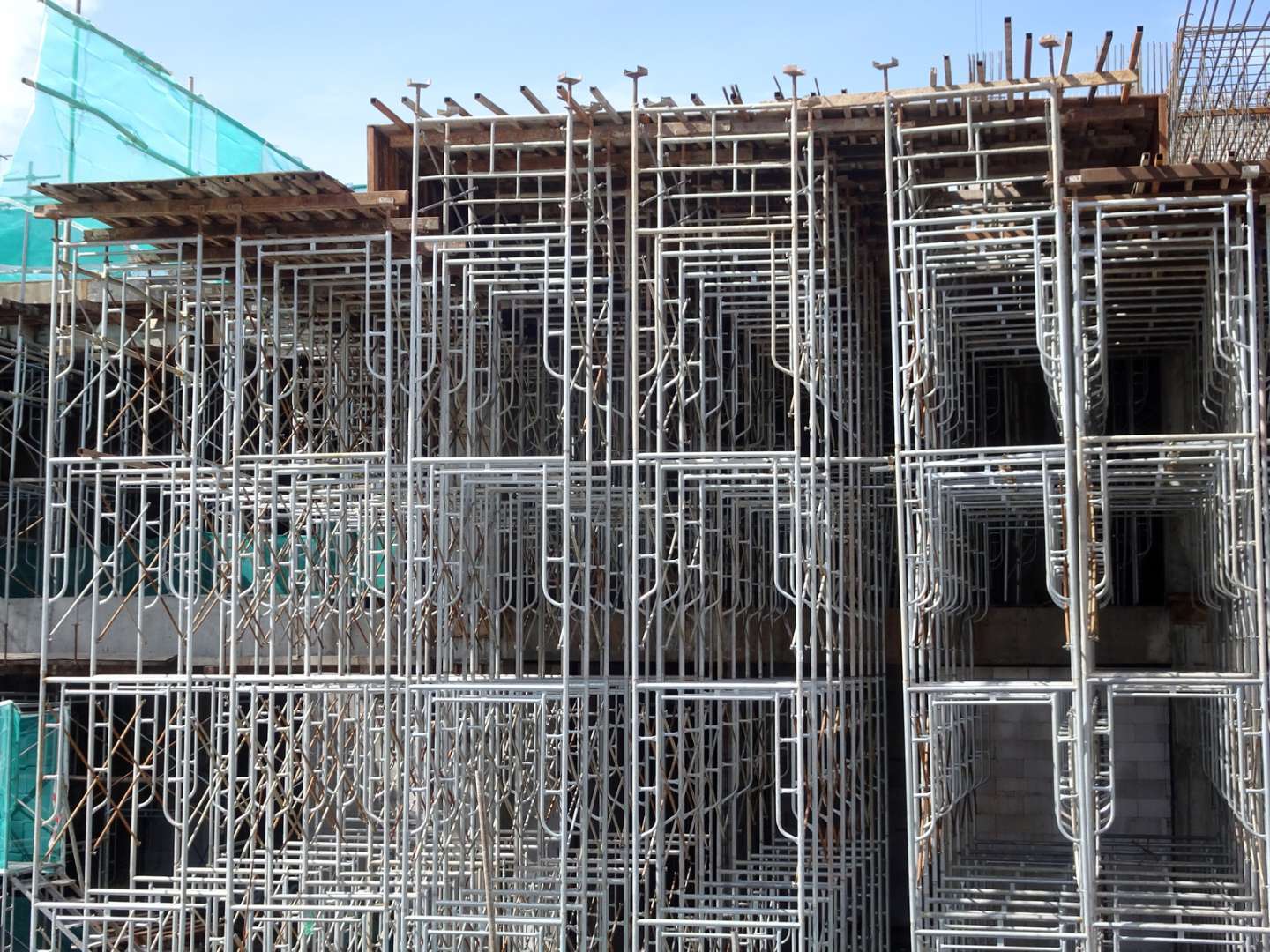 くさび緊結式足場を設置する際、最も重要なのが高さの制限です。原則として、この工法で組める高さは「31m以下」と定められています。31mというと、一般的なマンションの7階〜9階程度に相当するため、低層住宅から中層ビルまでは通常の部材で対応可能です。ただし、近年開発された「ビル工事用」として認定を受けた高強度な部材(支柱の肉厚があるもの等)を使用し、かつ補強を適切に行った場合に限り、最大「45m(約14階建て相当)」まで設置が可能となります。